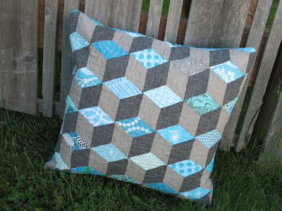 Pillow talk swap was impetus enough to retire our boring plain pillows and come up with fabulous replacements. Reason two is because these are half inch hexies! That's a finished hexagon about 1" across and believe me, after hand-piecing 400 of these babies, I'm ready to be done. A pillow was about a big as this project was going to get.