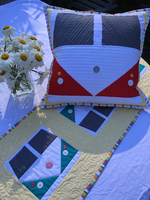 So I created a pattern with a couple of options for you. The Beach Bus block is a foundation pieced pattern that can be made in either a 8" or 16" block.  The 8" block is perfect for the table runner I've shown here.