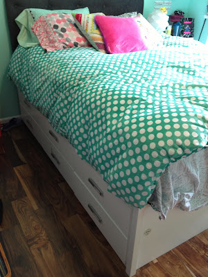 New furniture that her Dad built (yup, he's handy that way) and new custom mattress courtesy of her uncle (that was fortunate).