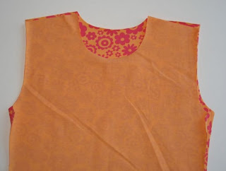 1. Sew the front yokes to the front of the shirt. Remember the front edges of both the yoke and the main body piece are notched. (In case you were wondering which one goes in front, and which in the back. One side of the yoke is alot longer - that one goes in the back.)