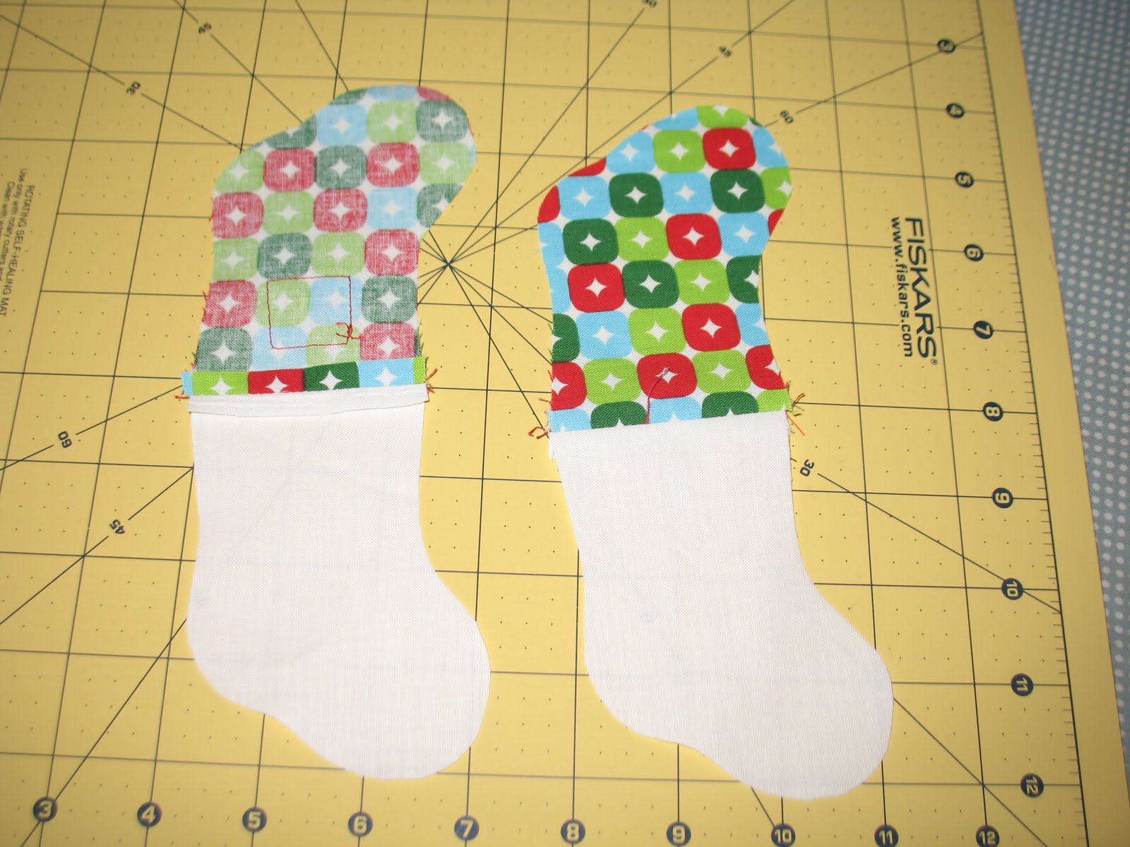 I lined all my stockings, so I also trace 48 stockings out of a lining fabric. You can use anything for this since you won't really see the lining. I used some Kona white.
