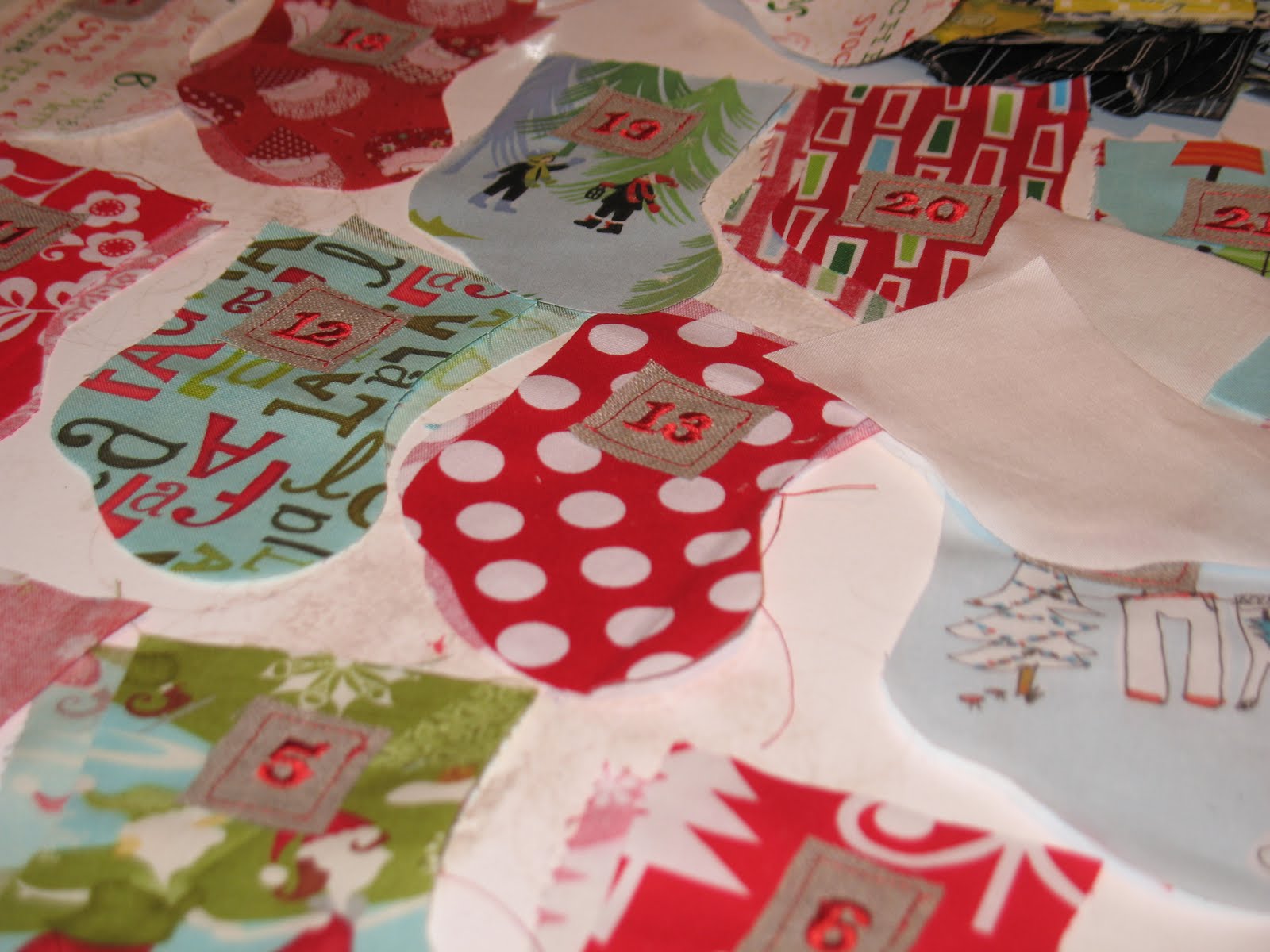 It's snowing outside!! How appropriate then for me to share with you my stocking advent calendar tutorial. If you have a snow day coming your way soon, you can stitch up one of these in time for Dec 1st.