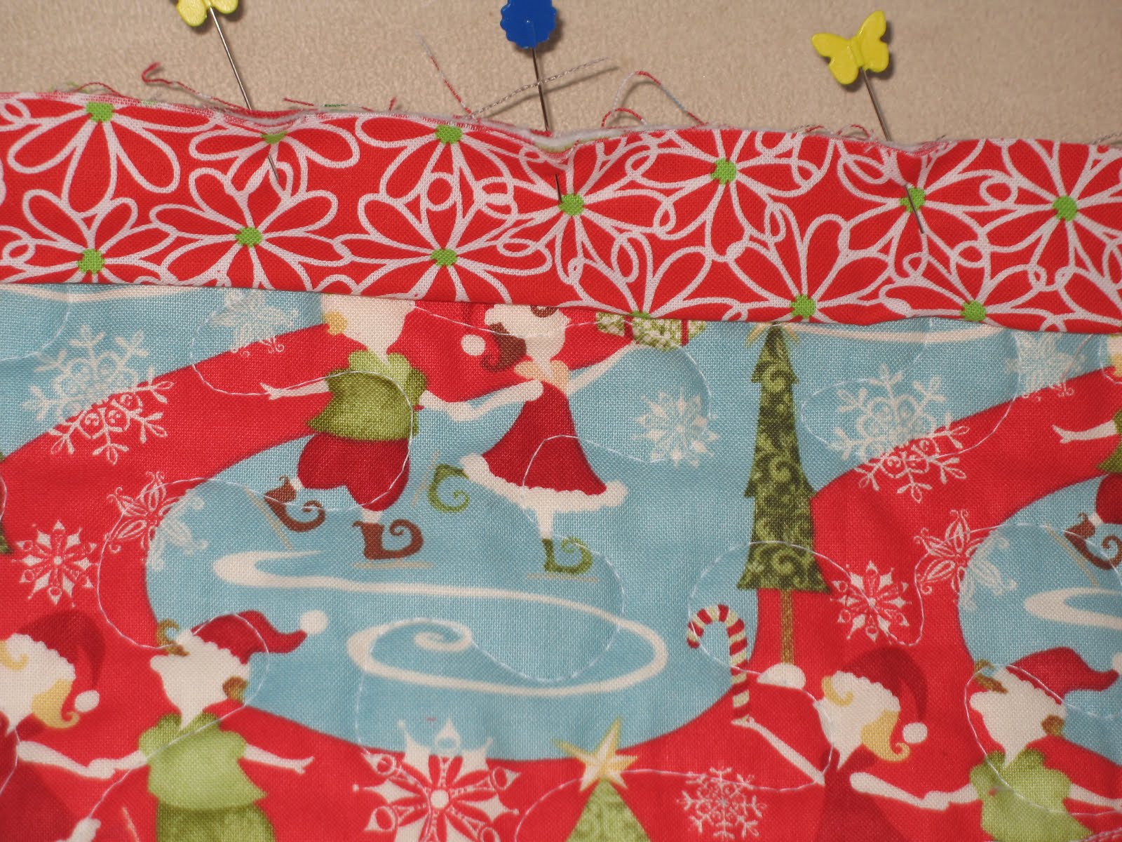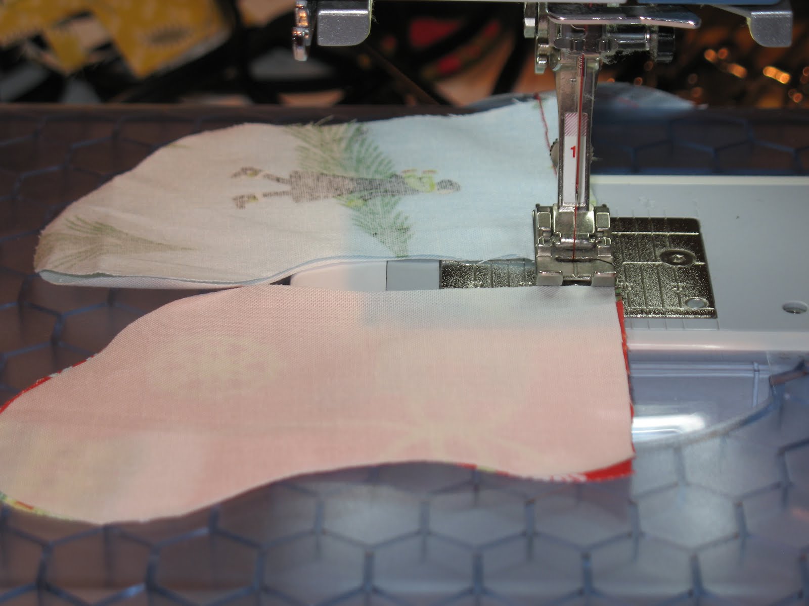 Then sew a 1/4" seam along the top of the stockings.