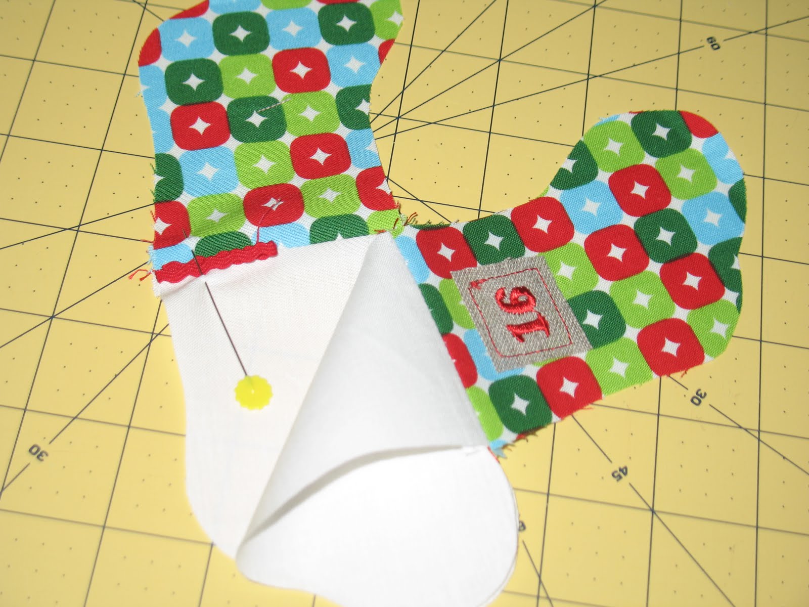Clip the corners of the curved seams, taking care not to clip the stitching! This will help the curved seams lie flat in the final stocking.